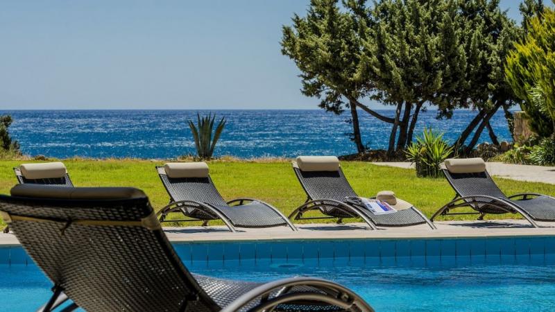 Villa di Pefkos situated in Pefkos on the sea, offers accommodation with free WiFi, air conditioning and a big garden. This beachfront property offers access to a balcony.